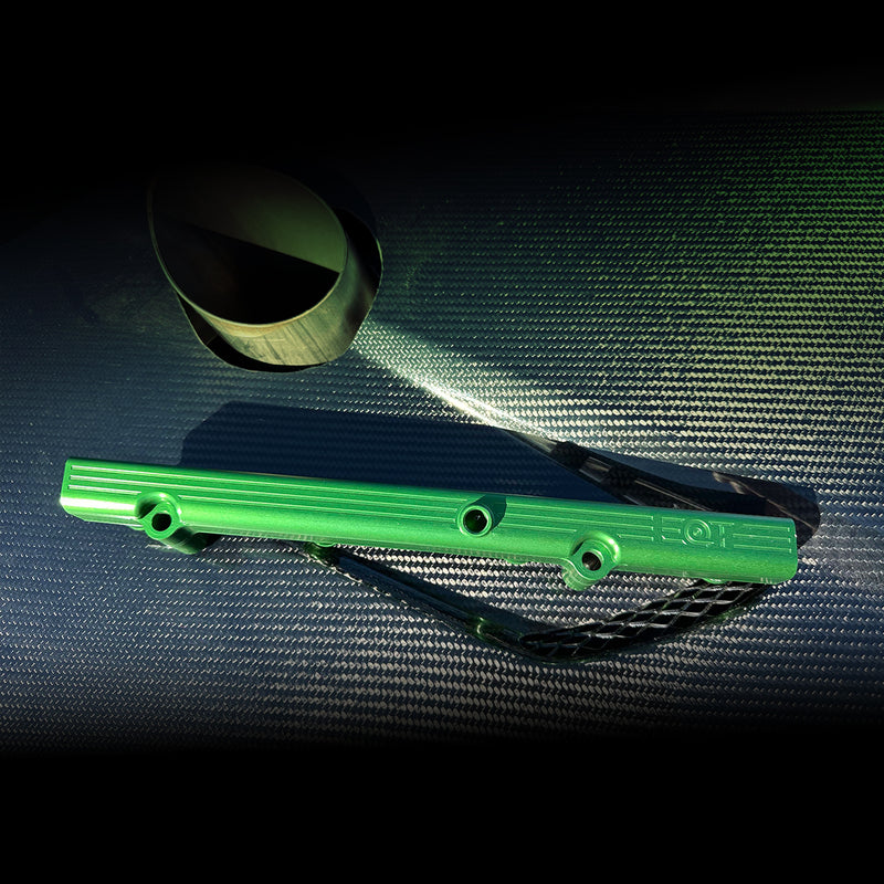 - Β Proprietary billet aluminum fuel rail made in house in the U.S.A.Β