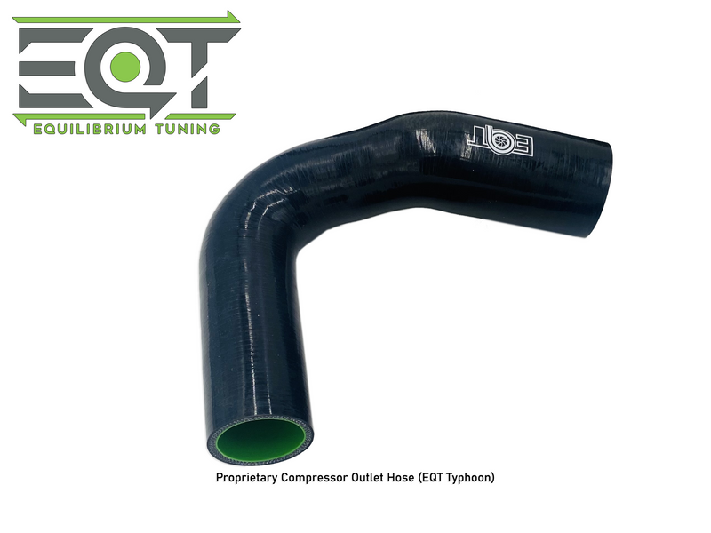 This inlet hose is designed to fit directly onto your EQT Typhoon turbocharger and mate up to many aftermarket intakes including the AMS Performance Carbon Fiber Intake as installed on our Development Vehicle.
